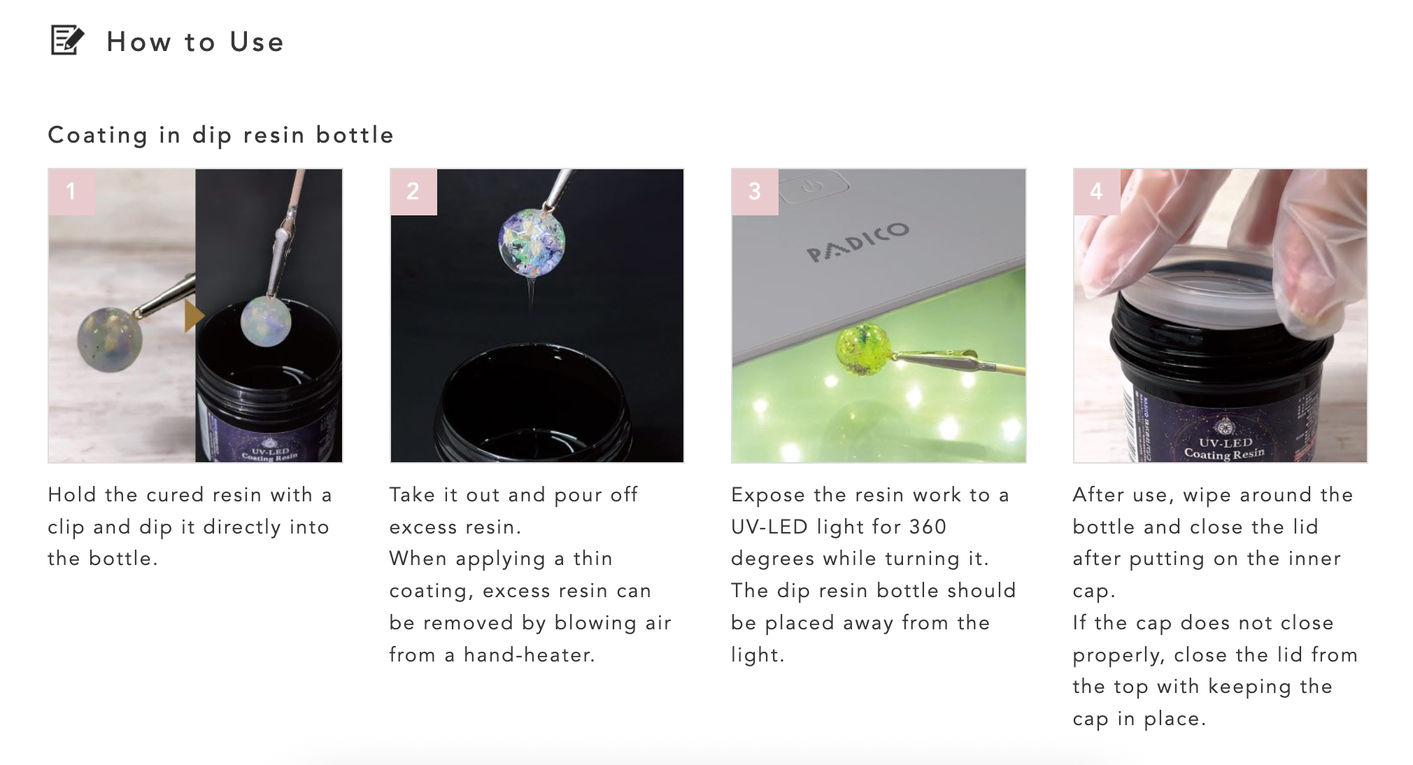 為作品薄塗及固化後,形成帶光澤或磨砂的保護。(不適合用來製作厚的作品)